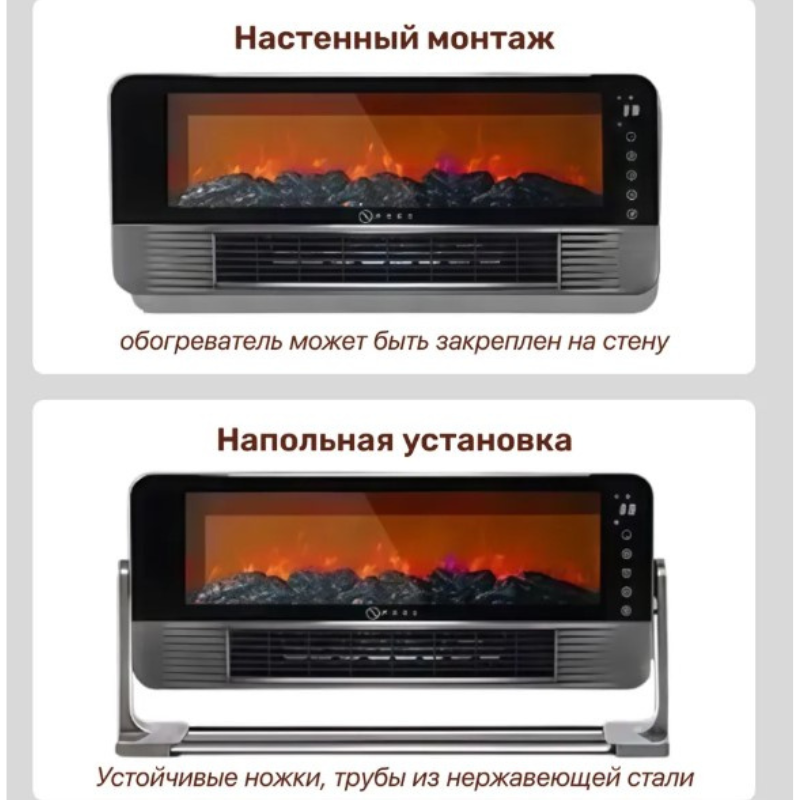 Главное преимущество этого камина — его универсальность в установке. Вы можете разместить его на полу, используя устойчивые ножки из нержавеющей стали, или закрепить на стене для экономии пространства. Компактный и элегантный дизайн позволяет ему гармонично вписаться в любой интерьер. Этот электрокамин — идеальное решение для тех, кто хочет добавить в свой дом не только эффективный источник тепла, но и изысканный декоративный акцент.